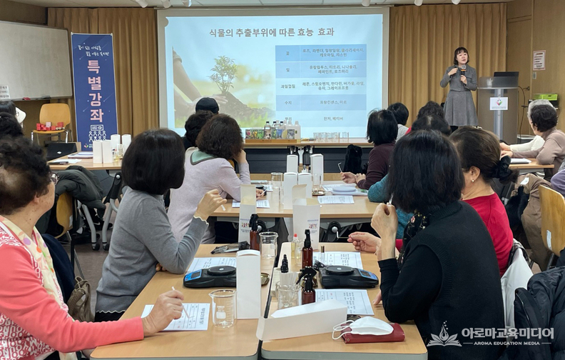 실버 세대를 대상으로 한 아로마테라피 교육은 향을 통해 감정을 자극하고, 일상에 소소한 변화를 줄 수 있다는 점에서 긍정적인 평가를 받고 있다. 교육 참여자들은 직접 만든 제품을 즉시 사용해보며 향에 대한 반응을 공유하는 시간을 가졌고, 이는 소통과 정서적 교류를 유도하는 계기가 됐다.